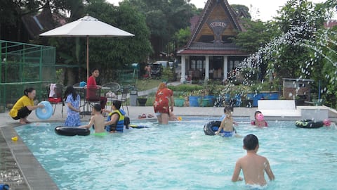 Me·ra·ya·kan v memuliakan (memperingati, memestakan) hari raya (peristiwa penting):
